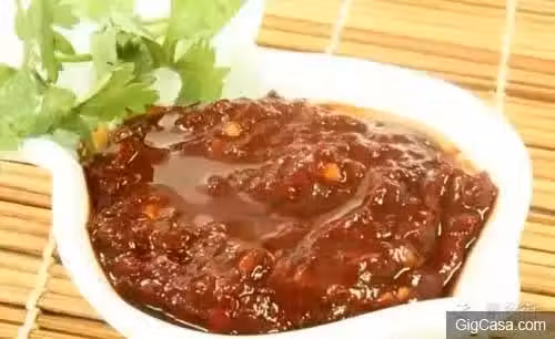 將油下鍋燒熱,炒香素峇拉煎粉 + 辣椒醬。