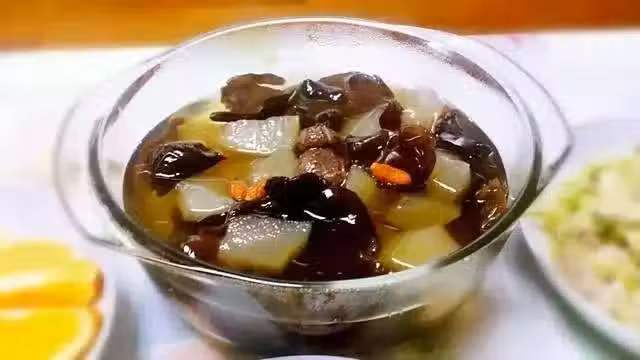 冬瓜一塊,干木耳兩把,乾花菇一把,紅棗一把,枸杞半把,鹽、香油適量