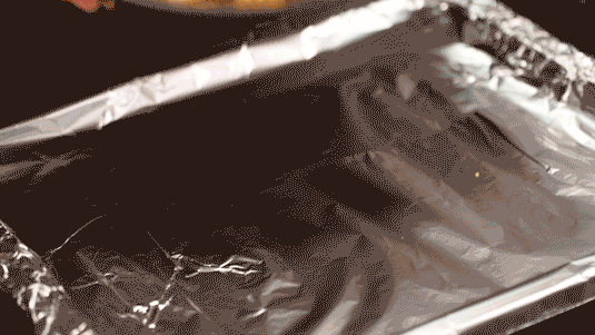 7. 烤盤鋪上錫紙,刷上一點橄欖油,倒入拌好的蔬菜,鋪平