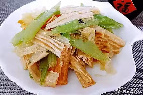 材料:芹菜,黑白木耳,腐竹,胡蘿蔔,花椒,蔥,蒜,鹽,蘑菇精,香油,麻油