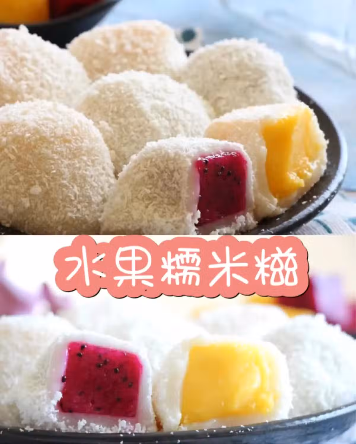 今天我們要做的是水果糯米糍,水果味道比較清爽,配上香甜的糯米皮和椰蓉,清新爽口,特別好吃。