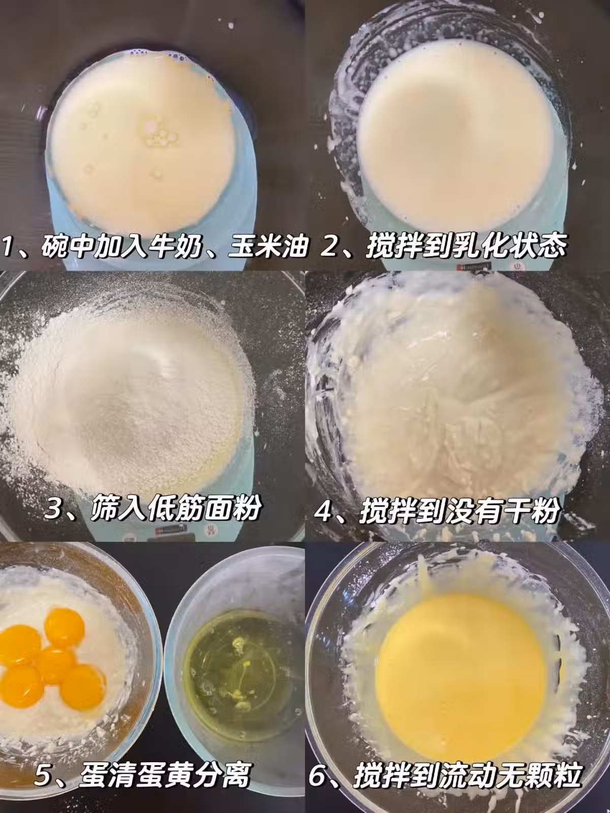 ④麵糊中加入蛋黃,攪拌到無顆粒;