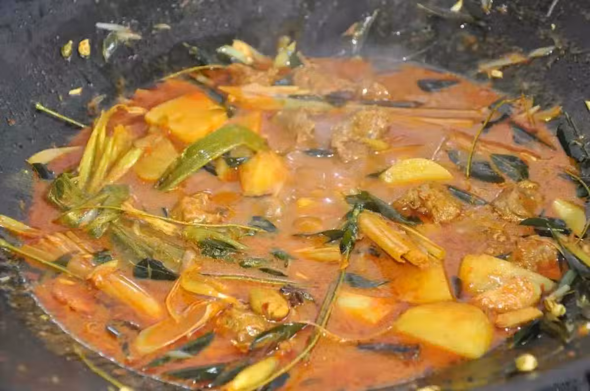 5. 倒入素湯,熬制馬鈴薯軟爛。