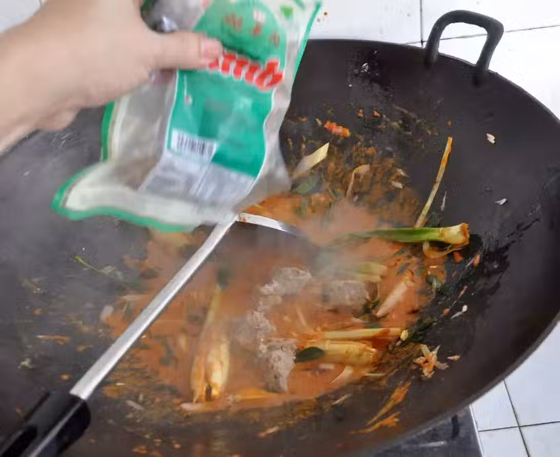 3. 加入咖喱膏炒香。
