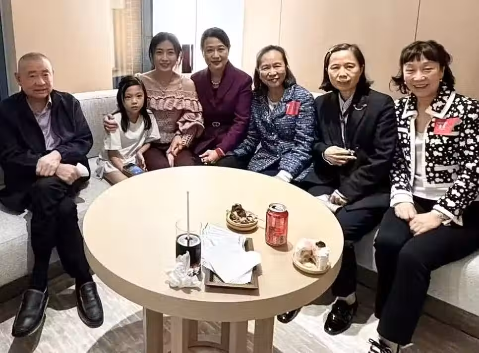 劉鑾雄夫婦恩愛合體,甘比與劉家親屬拍全家福,細節看出其家族地位