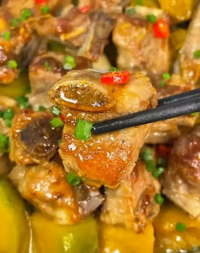 做法:排骨洗凈切塊,加入生抽2匙、蚝油2匙、料酒1匙,薑絲、砂糖、鹽、澱粉、黑胡椒各少許,攪拌均勻腌制20分鐘~