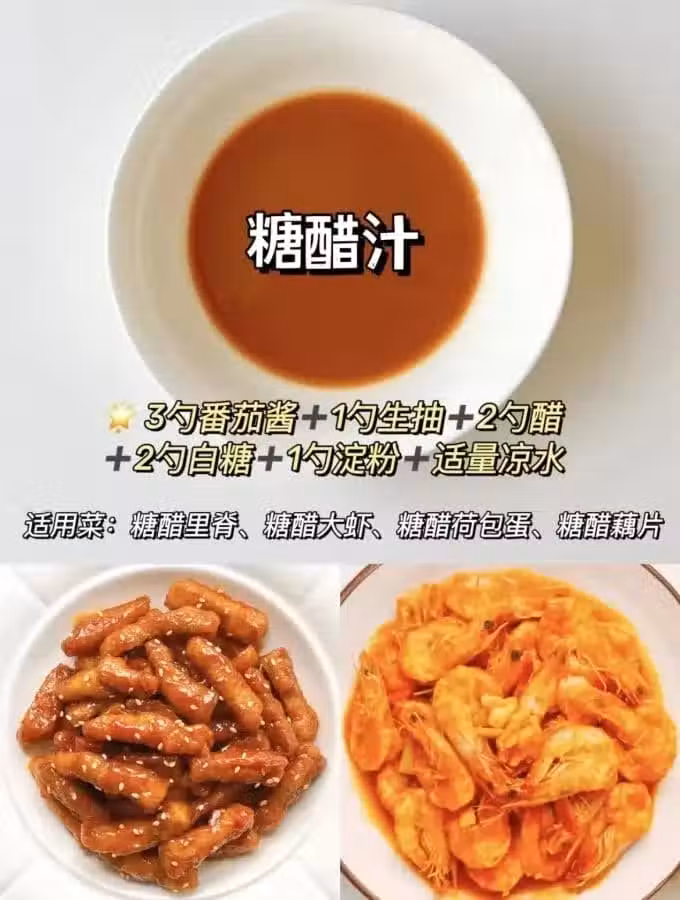 【適用菜】糖醋裡脊、糖醋大蝦、糖醋荷包蛋、糖醋藕片