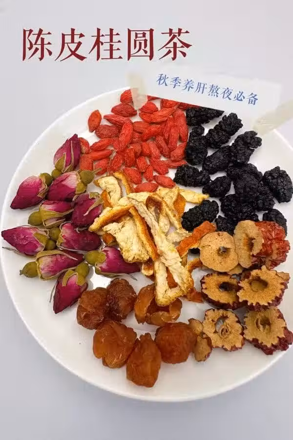 3. 陳皮桂圓茶:玫瑰花➕紅棗➕桂圓肉➕桑葚➕枸杞➕陳皮