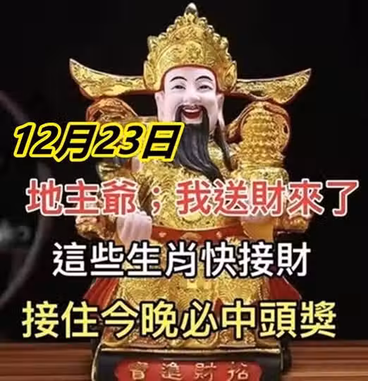 今天12月23日,地主爺說:我送橫財來了!這些生肖,今晚必中頭獎!