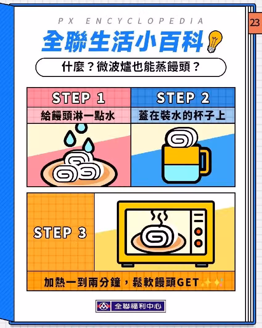 全聯強調,此時剛加熱完成的鬆軟饅頭吃起來像剛出爐一樣美味,而且包子也適用同理。