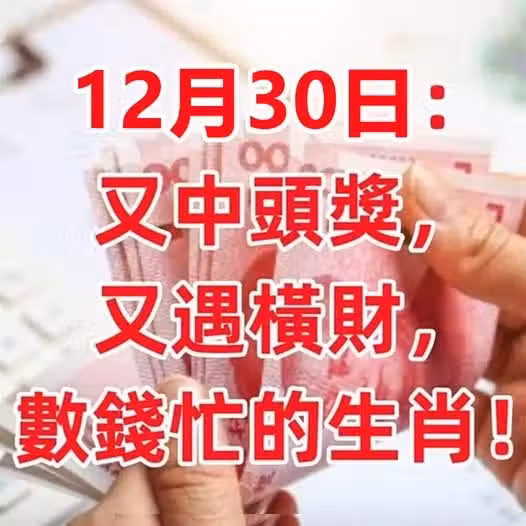 12月30日又中頭獎 ,又遇橫財,數錢忙的生肖 !