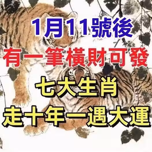 1月11號後有一筆橫財可發,走十年一遇大運的七大生肖