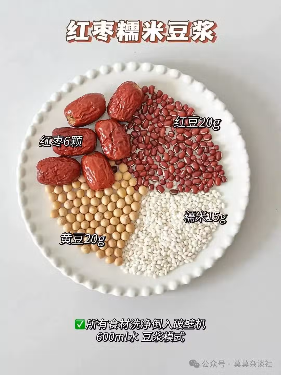 食材:紅豆20g | 黃豆20g | 糯米15g | 紅棗6顆 | 直飲水600ml