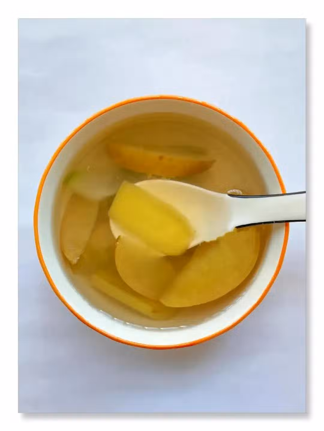 1、蘋果切薄片、冬瓜帶皮切片,3-4塊薑片。