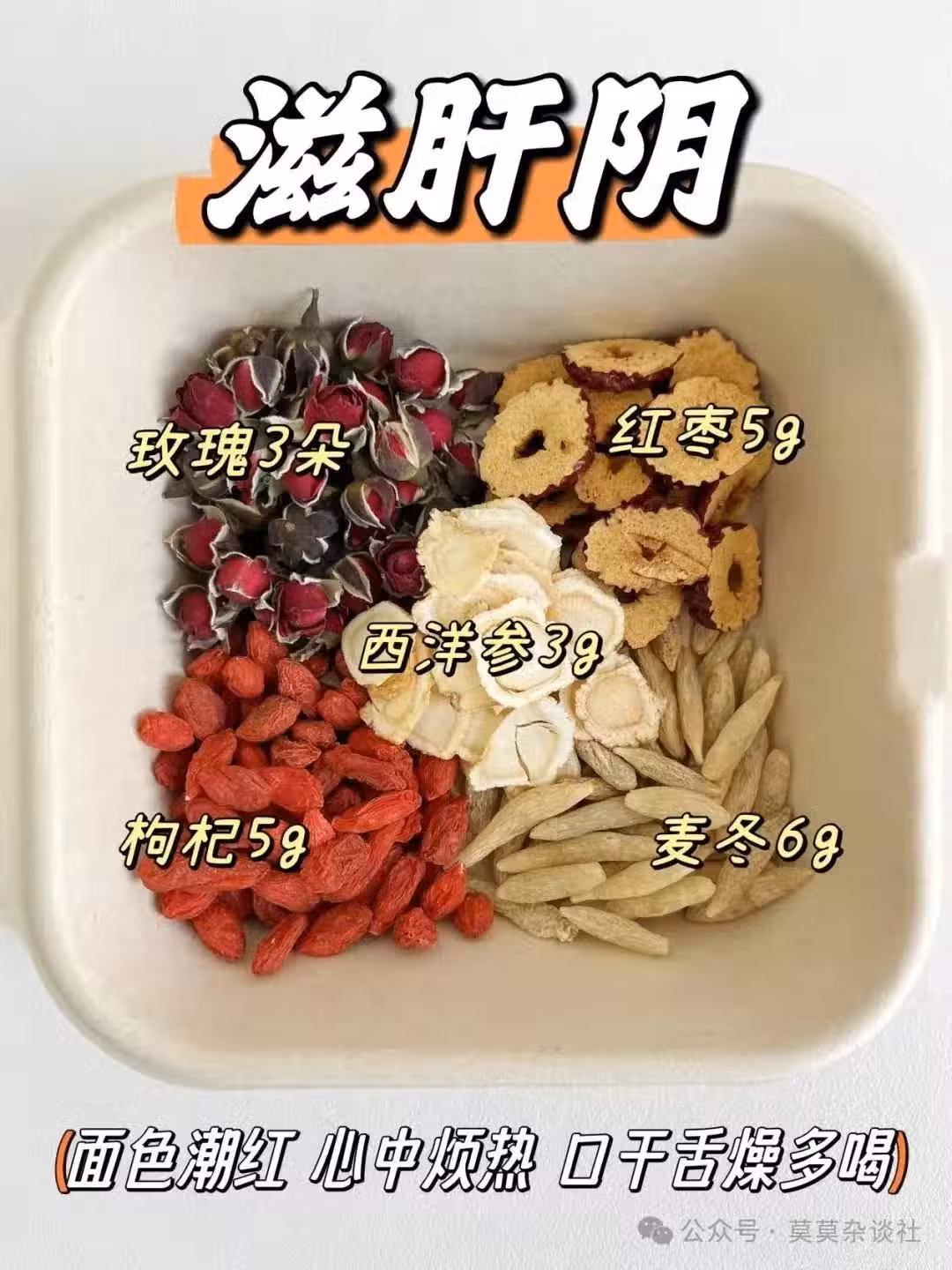 功效:這款茶是「乾燥星人」的福音!如果你經常覺得嘴巴發乾、喉嚨冒火、心煩失眠,那多半是肝陰不足在作怪。這款茶滋陰潤燥,幫你「滅火」,讓肝臟喝飽水,氣色自然紅潤起來!