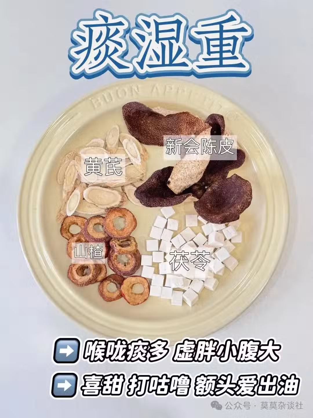 如果你的濕氣表現為肚子胖胖的、特別愛吃甜食,喉嚨里總覺得有東西卡著,嘴巴里黏黏膩膩,額頭愛出油,那麼很可能是痰濕在搞事情。