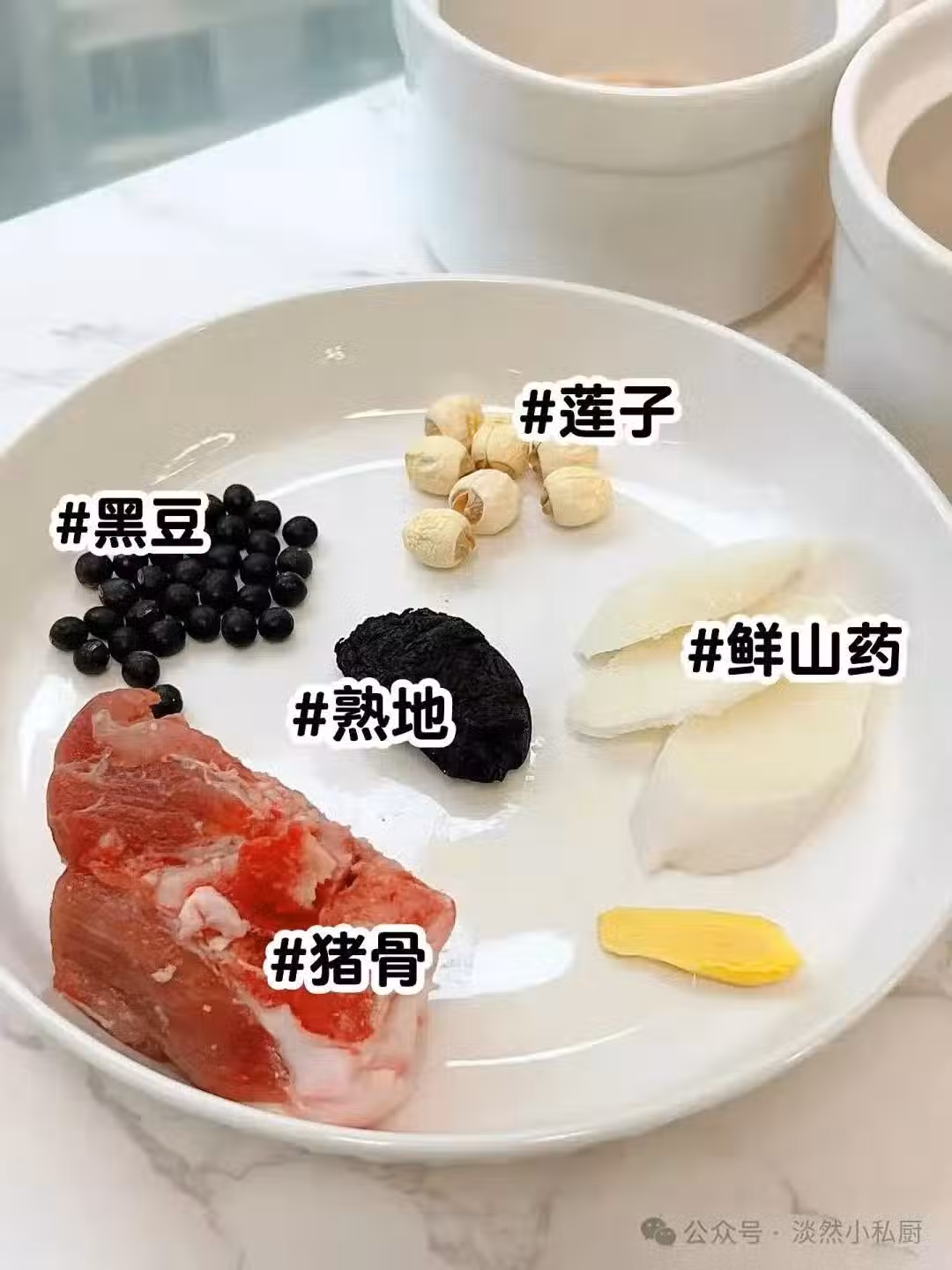 食材:熟地8克、黑豆15克、鮮山藥適量、蓮子6顆、豬骨100克、紅棗2-3顆、枸杞適量 做法:見下圖 熟地味甘,性微溫,歸肝、腎經,具有補血養陰、填精益髓的功效。用於血虛萎黃、眩暈、心悸失眠、月經不調、崩漏、盜汗、遺精等證。 蓮子對心臟有益,能夠提升人氣,使人更加開朗樂觀。蓮子芯泡茶喝可以去心火,治療心煩意亂等症狀,甚至對失戀等引起的抑鬱情緒也有緩解作用。