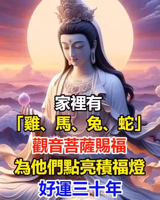 家裡有屬「雞、馬、兔、蛇」的人!今日觀音菩薩賜福,為他們點亮積福燈,好運三十年!!