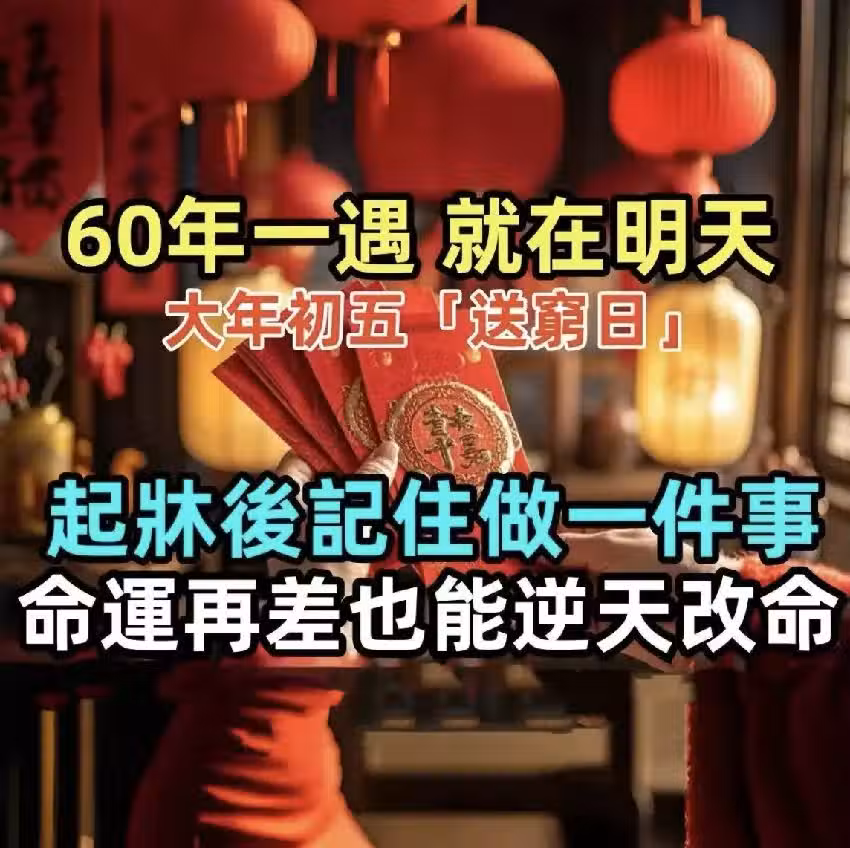 60年一遇,就在明天!大年初五「送窮日」,起床後記住做一件事,命運再差也能逆天改命!