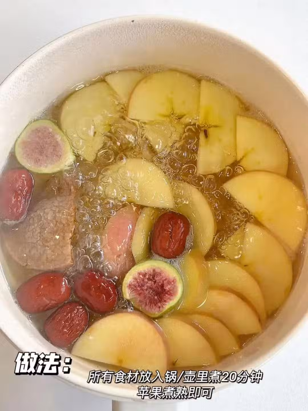 由於我不停地吃「蒸蘋果水」,導致臉蛋越來越紅潤透亮