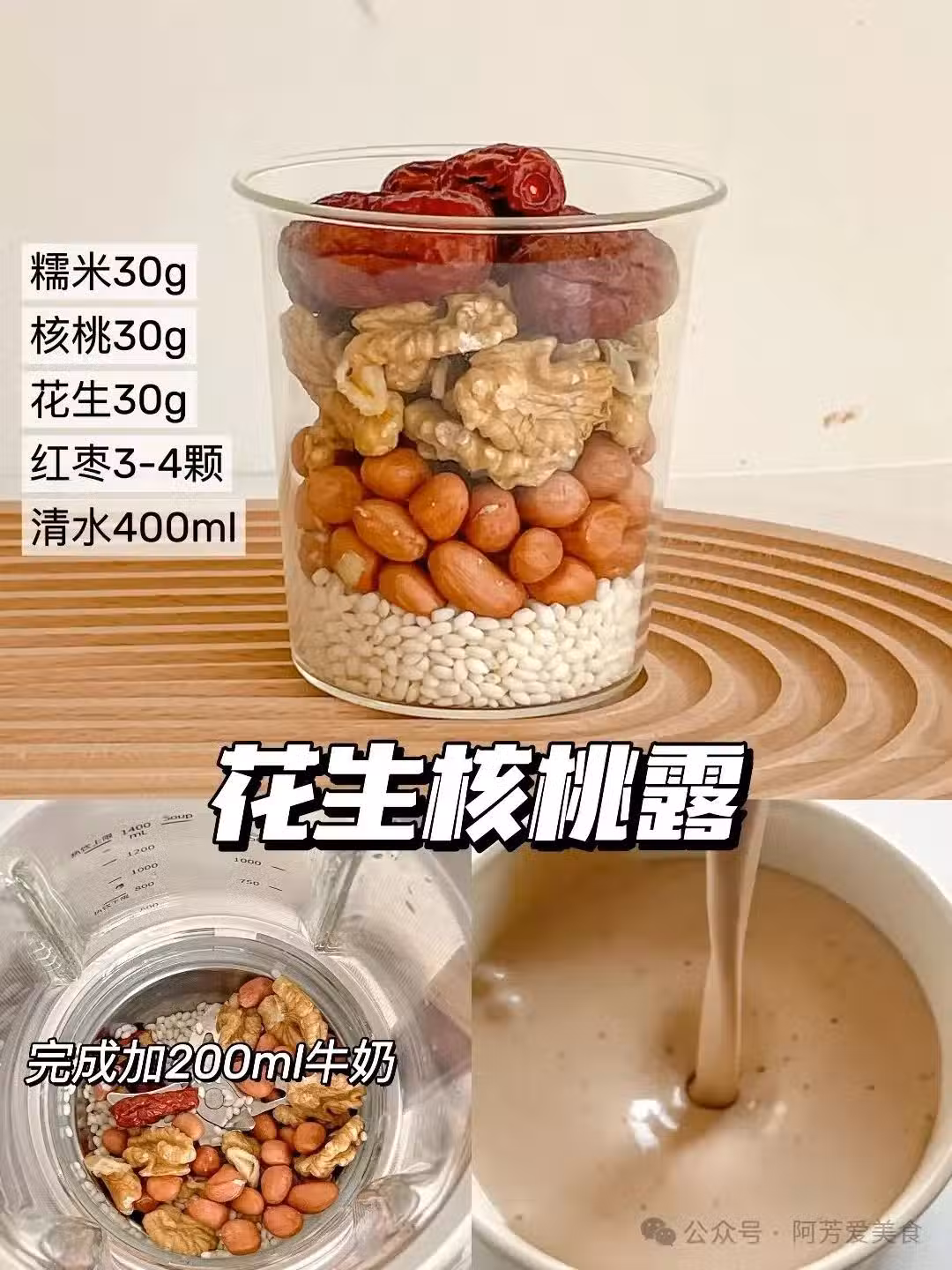 花生核桃露花生的香味搭配核桃的堅果香,打成米糊後會非常的香甜,喝了一口還想喝。