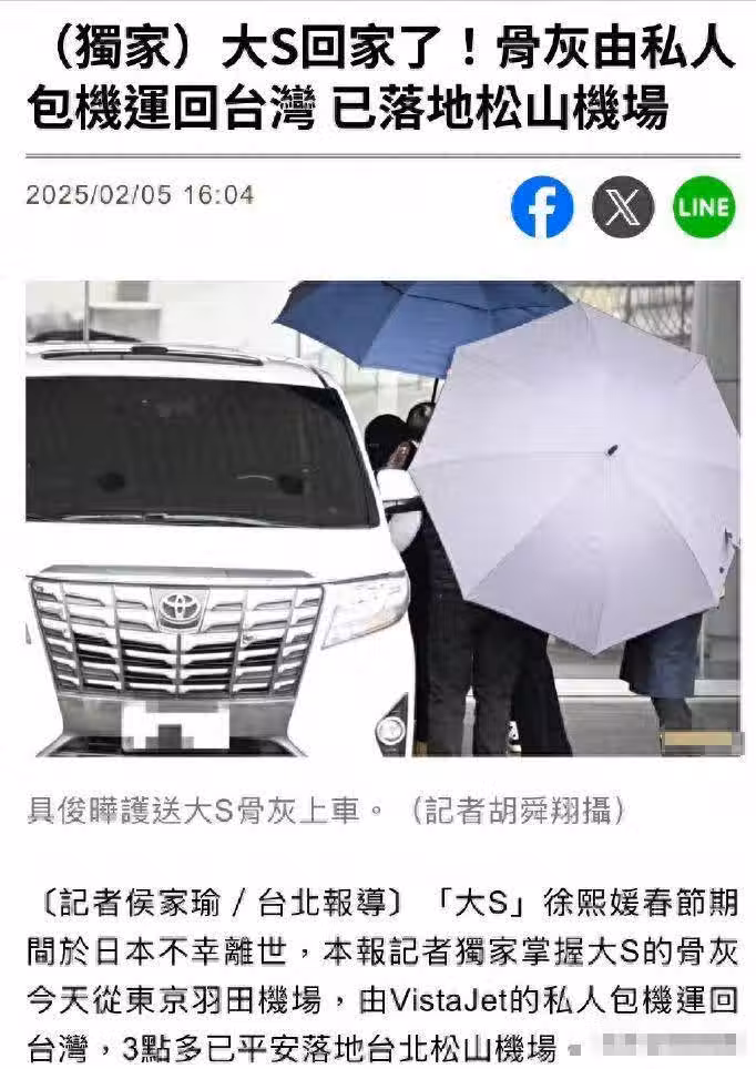 在外等候的媒體還曝出具俊曄崩潰痛哭,抱著大S的骨灰返回到家中。