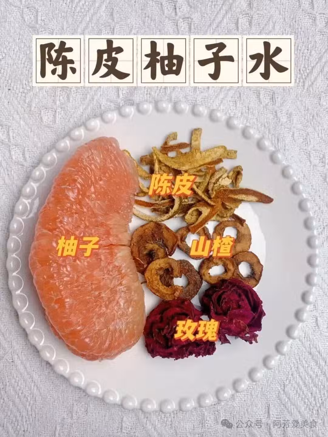 陳皮柚子水柚子的香甜搭配陳皮的香味,還有山楂酸酸甜甜的口感,再加入幾粒玫瑰花,簡直是完美。感覺在花海里一般,非常的好喝,酸酸甜甜的!