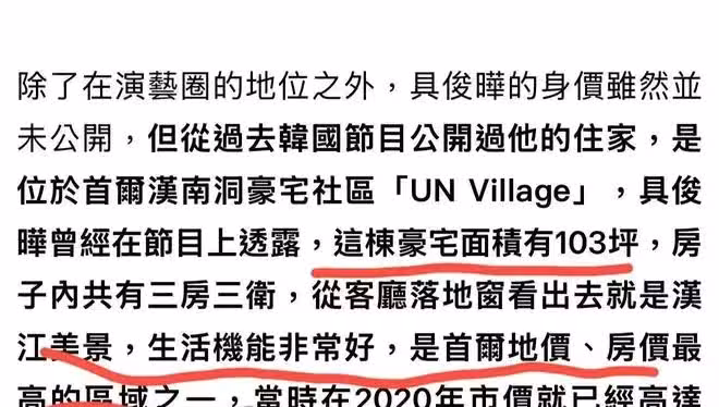 並曝光了具俊曄的豪宅,現在價值2.7億,據悉,具俊曄的豪宅是首爾最佳地段,開窗可欣賞漢江美景,很多明星大咖也選此地點居住,而且具俊曄的豪宅總103坪,換算平方的話有三百多個平,可以說不輸大S台北豪宅。