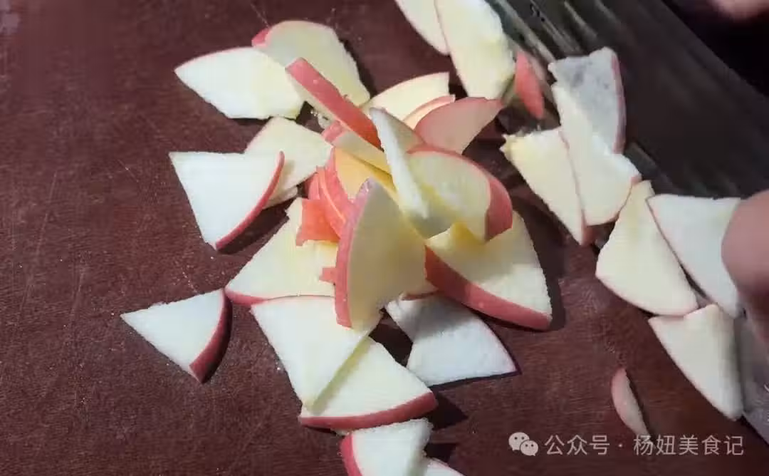 4、處理蘋果 蘋果富含膳食纖維、維生素等營養成分,熱量也很低。不過很多人買回家就直接啃,這樣並不能充分吸收蘋果的營養。 在蘋果表面灑少許清水,再撒上食鹽。雙手輕輕搓洗,去除蠟質和農殘。用清水沖洗2-3遍。去除蘋果核,切成與苦瓜差不多厚度的片狀備用。