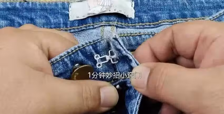 然而,我們可以將文胸上的鉤子縫到牛仔褲上,這樣既可以作為扣子使用,又非常牢固,且不影響美觀。
