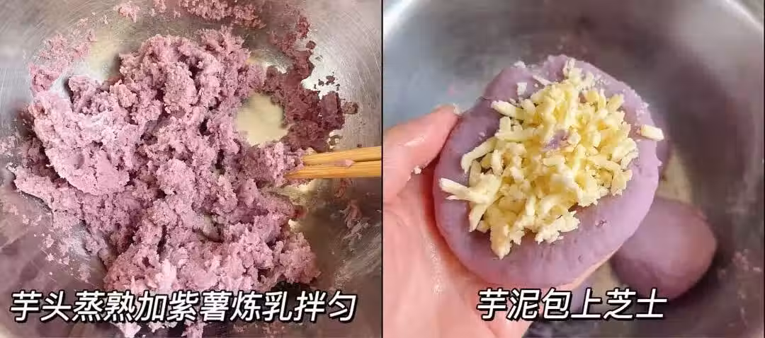 這屆網友真的很會吃…後悔做晚了!會拉絲的芋泥芝士餅,舔手指系列…