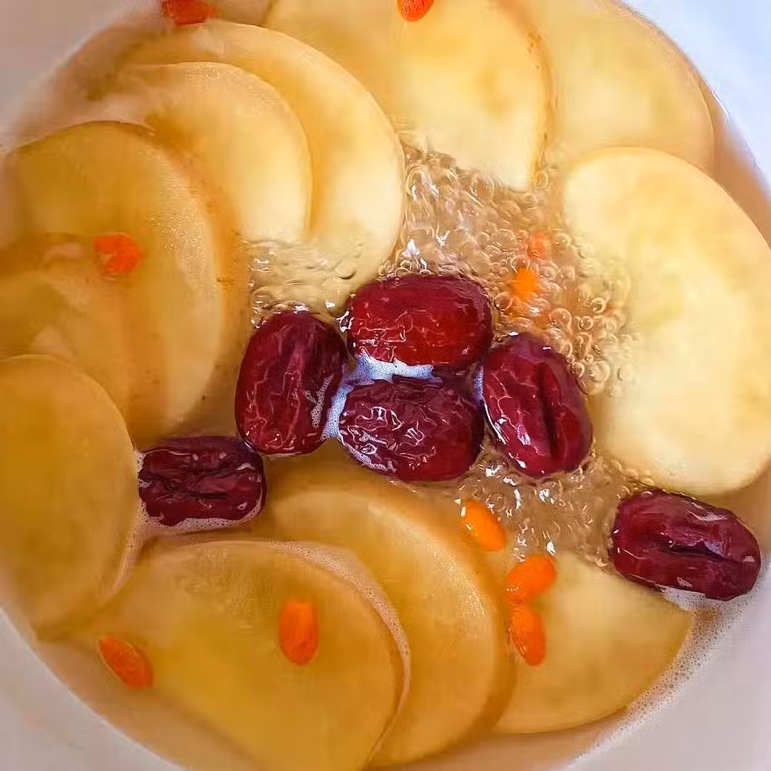 黃芪、黨參是經典的補氣中藥,搭配蘋果、紅棗,能夠增強體力、緩解疲勞、提高免疫力,特別適合 體虛乏力、精神不振的人。