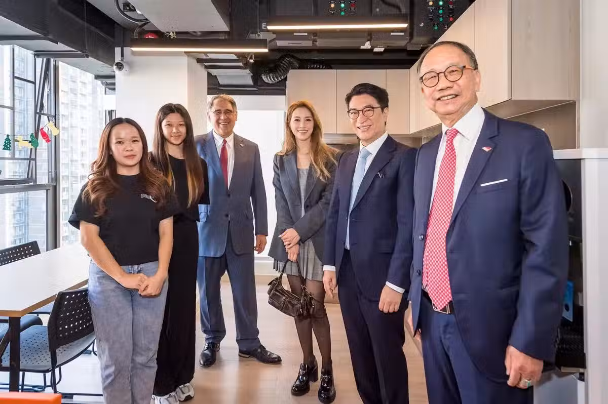 李家誠和徐子淇面帶燦爛笑容,看的出來大家心情都非常不錯。夫婦倆無論是在儀式上,還是在接受回贈紀念品時,或是在參觀學校宿舍時,全程基本都是形影不離,看著真的很恩愛呀。