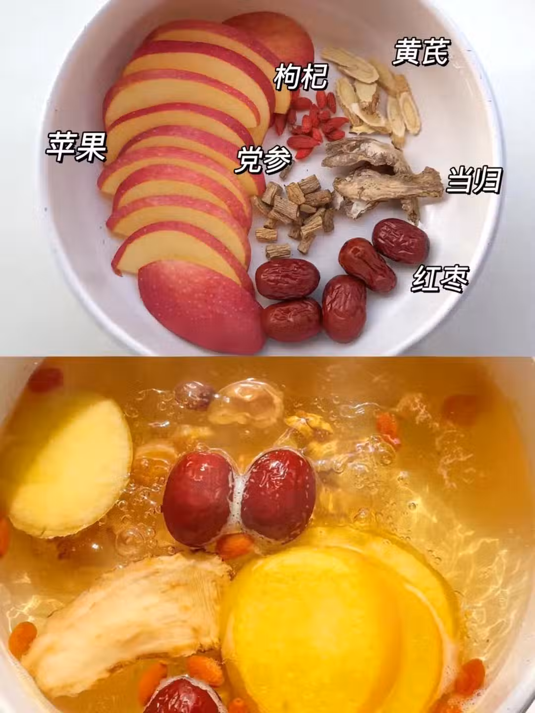 六、蘋果陳皮山楂水 陳皮理氣,山楂消食,緩解春季食欲不振、積食 食材:蘋果半個、陳皮5克、山楂干10克、茯苓5g 做法:陳皮提前浸泡,所有食材煮20分鐘,可加少許蜂蜜 飲用建議:大餐後或久坐時飲用