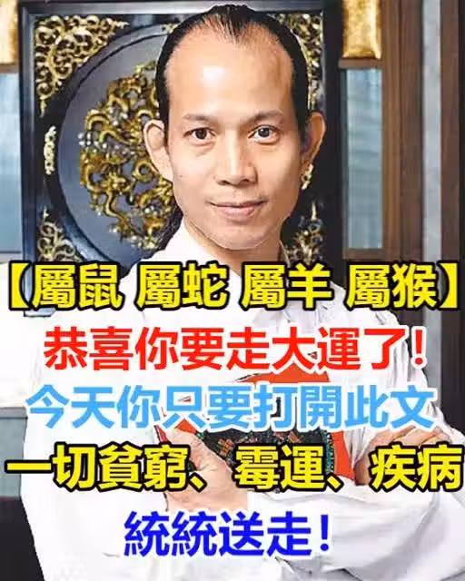 【屬鼠 屬蛇 屬羊 屬X】恭喜你要走大運了,一切貧窮、霉運、疾病統統送走!