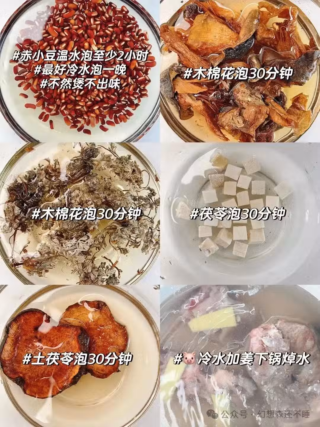 2️⃣木棉花、綿茵陳、茯苓、土茯苓各泡水30分鐘(更好效用)備用