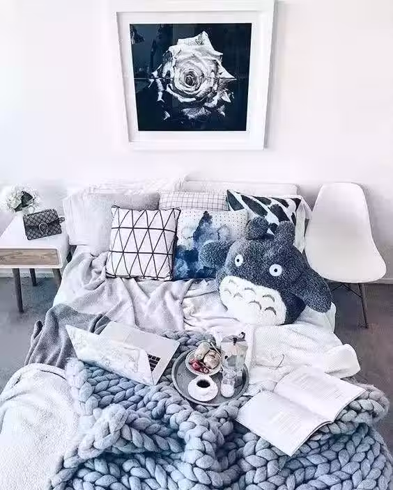 很多姑娘們喜歡在床上放上抱枕,睡前習慣靠著枕頭看書休息。