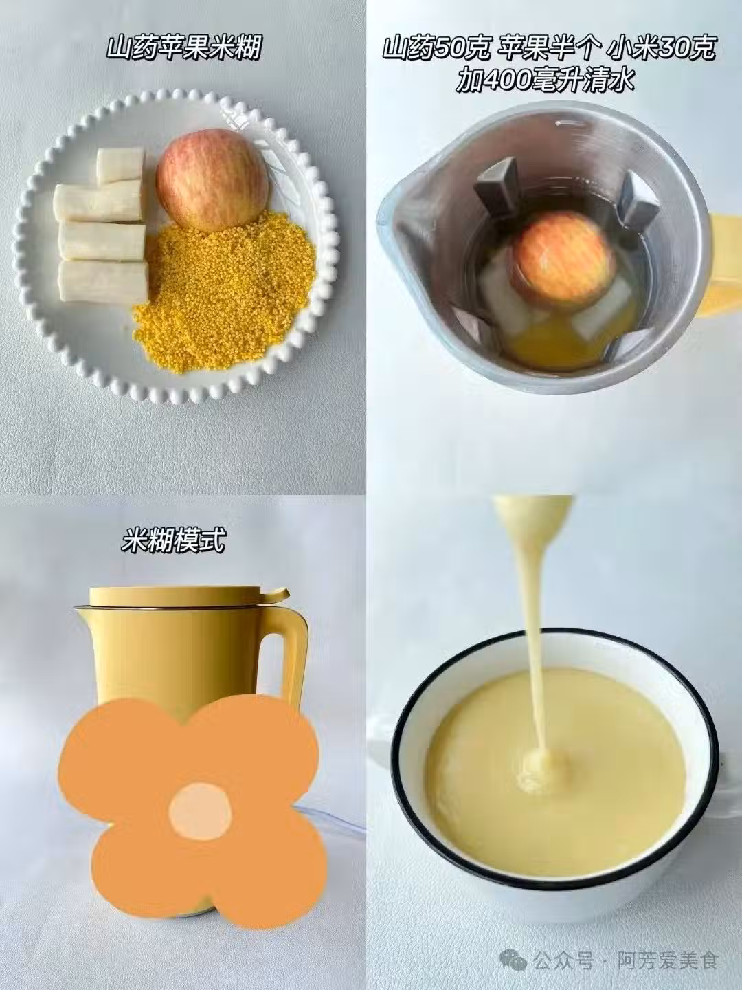 山藥蘋果米糊,蘋果香甜的味道,搭配山藥軟軟糯糯的口感,非常的輕爽,又帶著一絲甜味,不膩口感也好喝,很適合給小朋友們喝。