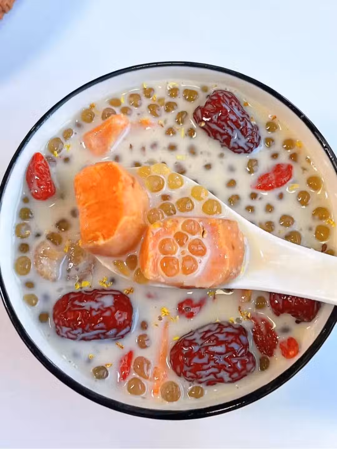 【食 材】:紅糖、枸杞、西米、紅薯、紅棗、桂圓