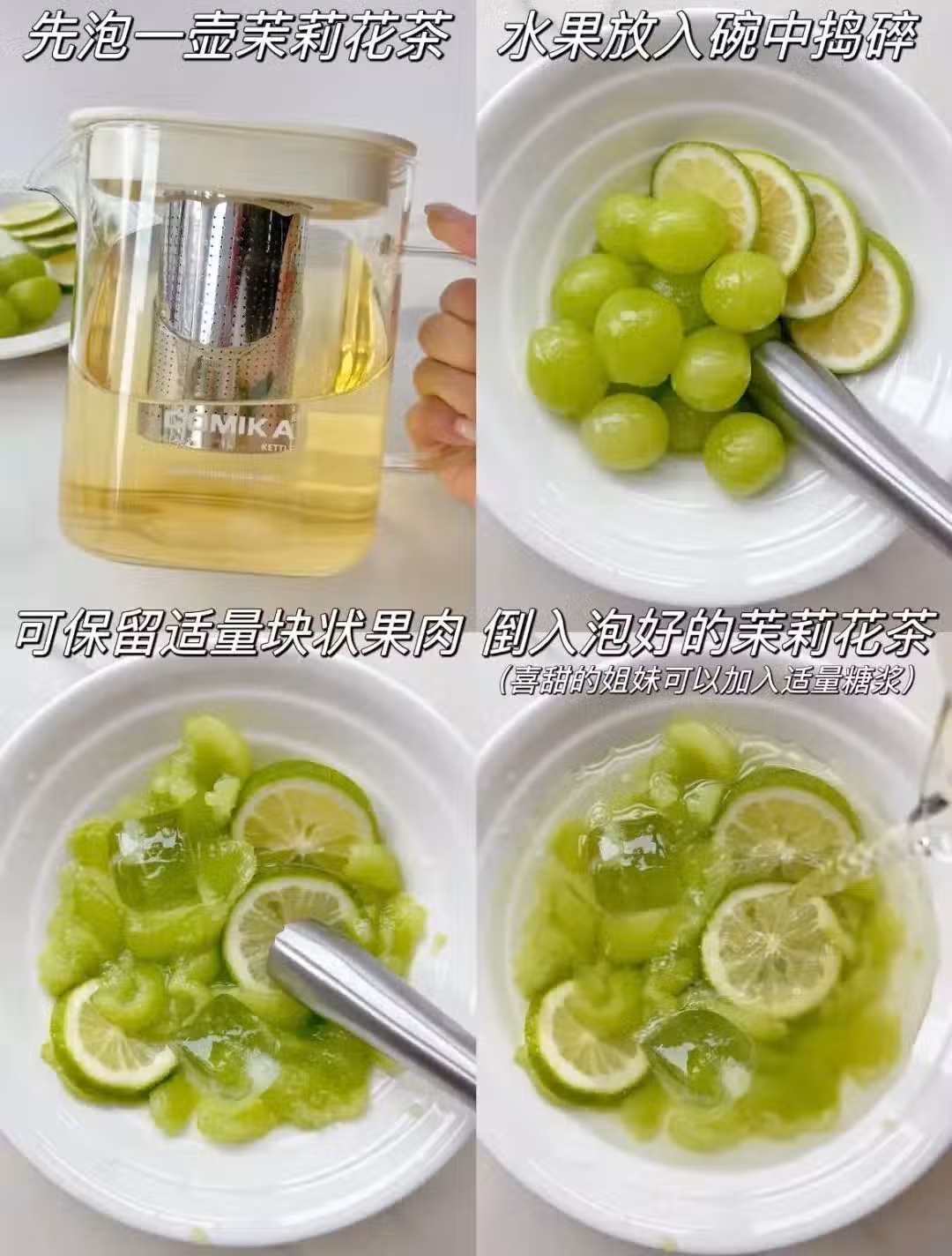 3️⃣倒入泡好的茉莉花茶,根據個人喜好加入適量糖漿~