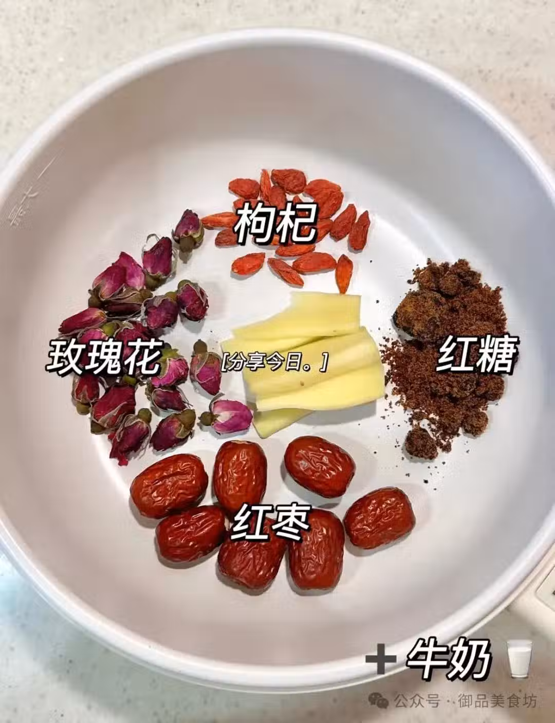 1️⃣紅棗、紅糖、生薑加水煮開。