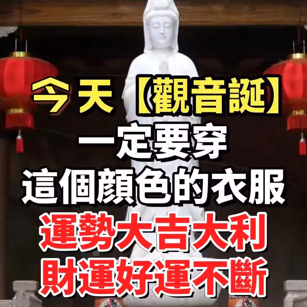 📌 觀世音菩薩象徵慈悲、智慧與福報,這天穿對顏色的衣服能夠吸收菩薩的能量,讓運勢提升、財運翻倍!
