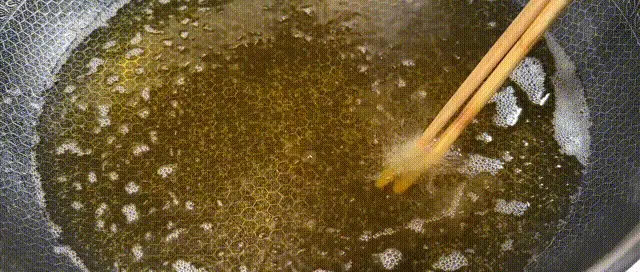 炸約30秒後,用漏勺輕輕翻動,使其受熱均勻。全程保持中火炸5分鐘左右,直到蘑菇金黃酥脆,撈出控油。
