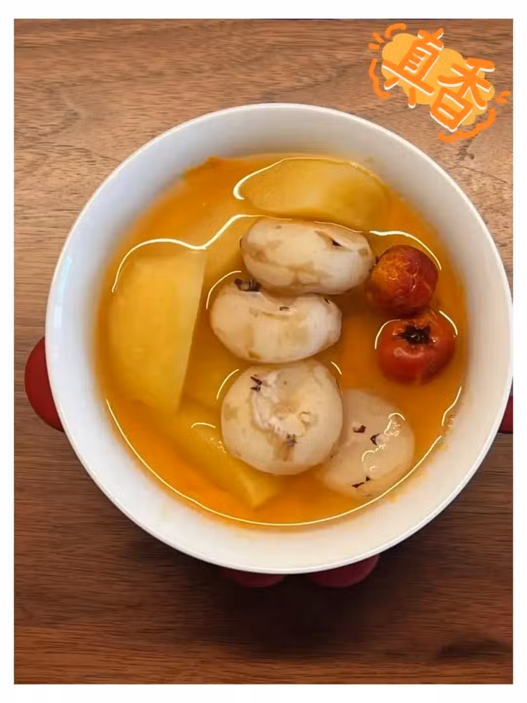 由於我不停地吃「蒸蘋果水」,導致臉蛋越來越紅潤透亮