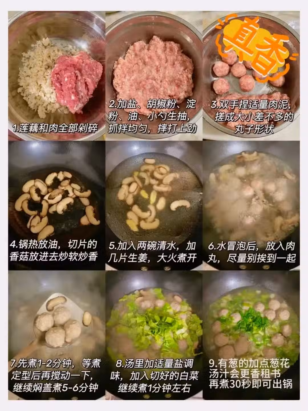 ①豬肉選肥瘦相間的,丸子更鮮嫩。