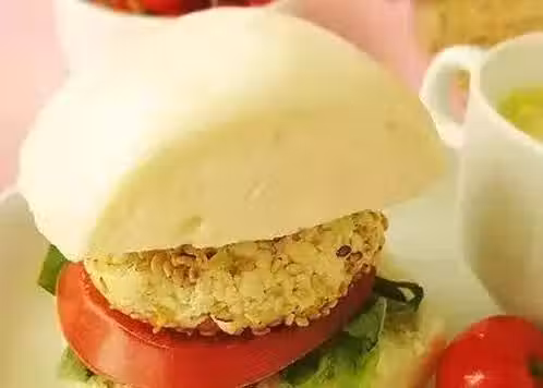 3、平底鍋里少倒些油,放入豆腐排,煎至兩面金黃就可以了。可以蘸取自己喜歡的醬料直接吃,也可以夾在漢堡、麵包片、饅頭裡做成三明治或漢堡。