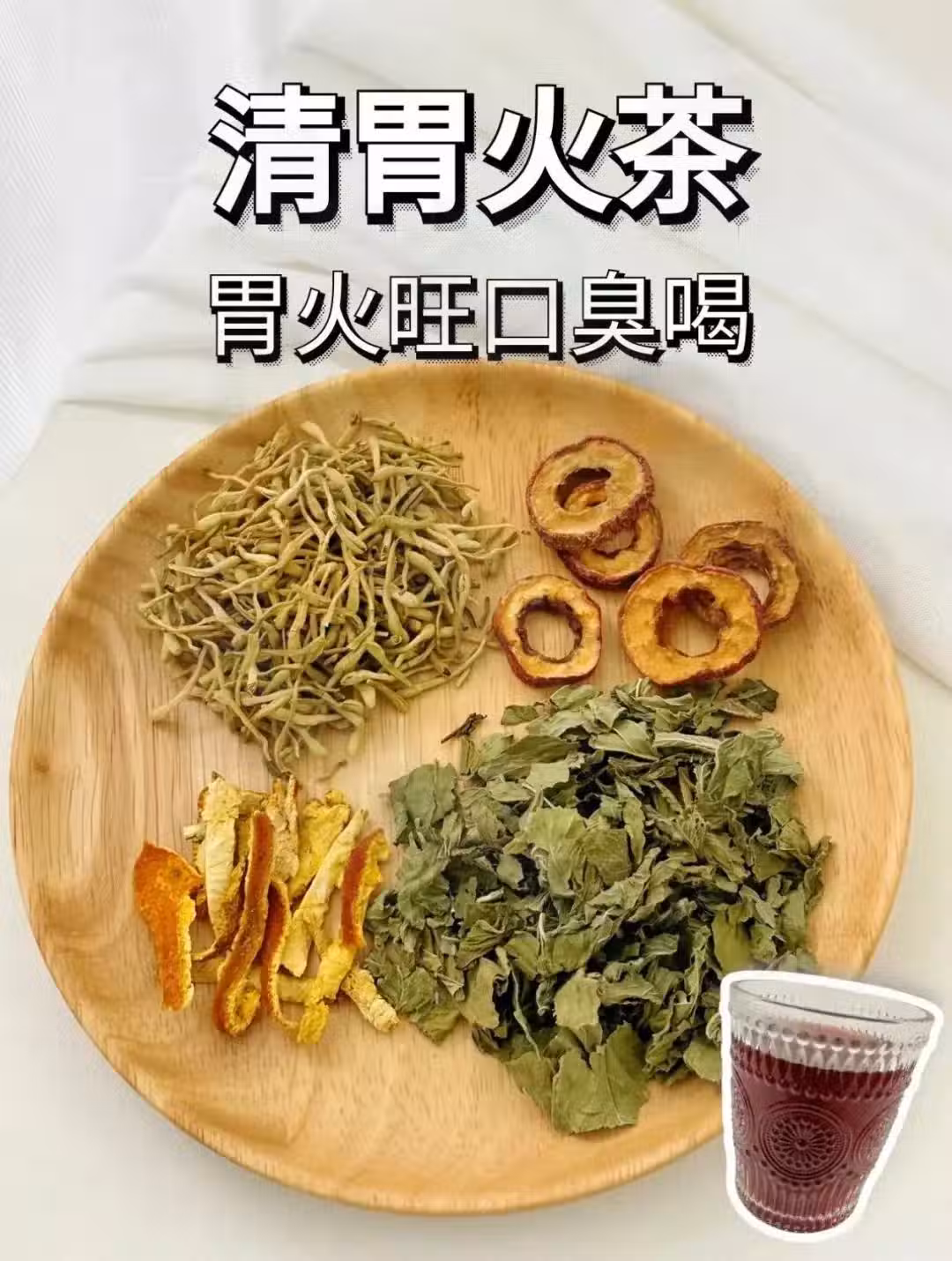 金銀花3克,薄荷3克(金銀花、薄荷也可以加到5克),陳皮3克,山楂干6克。