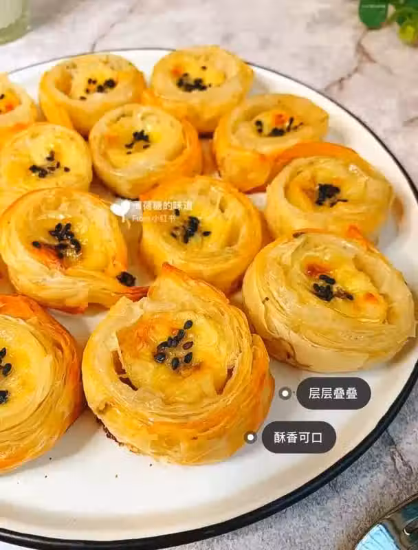 2.刷點蛋液,撒點芝麻,送入i3烤箱中層、190度烤20分鐘至表面金黃。