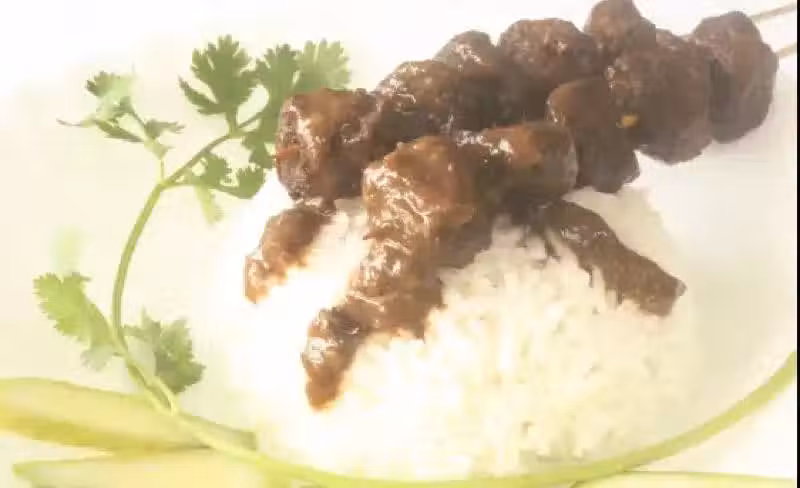 將烤醬均勻塗在大豆肉上,放進烤爐,烤至大豆肉開始發出噝噝聲,將豆肉串翻過來,塗上烤醬,再放進烤爐里烤。