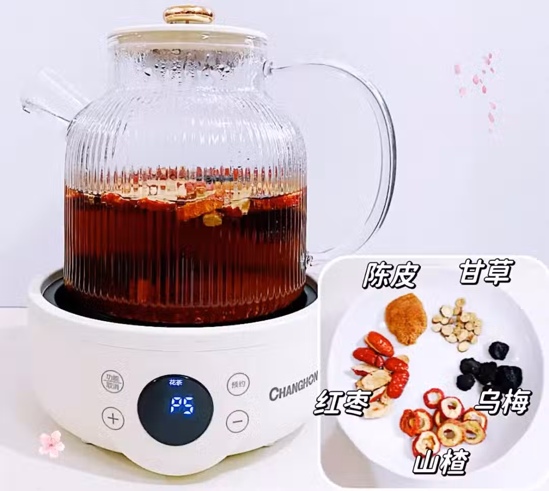 烏梅6顆,陳皮半個、紅棗6顆、山楂10克、甘草5克